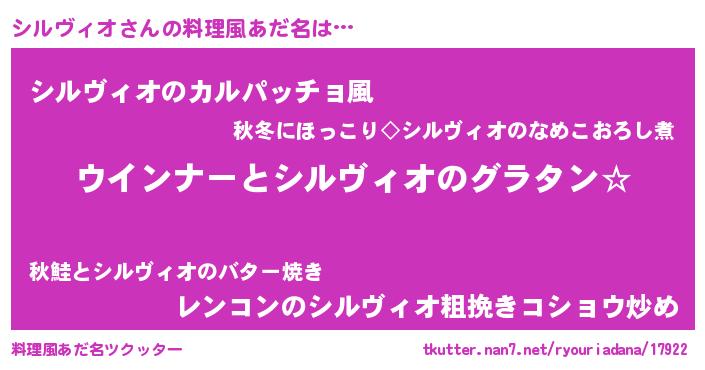 | 欧米人風あだ名 | 『シルヴィオクリステル』 |