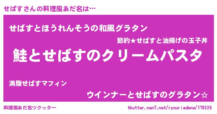 | 女子向けラノベタイトル風あだ名 | 『死神せばすの再婚』『せばす伯爵の花嫁』 |