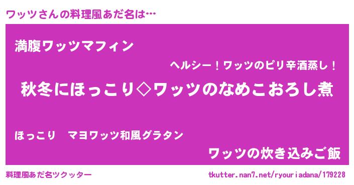 | ヘコむあだ名 | 『ワッツ(苦笑)』『ワッぷりん』 |