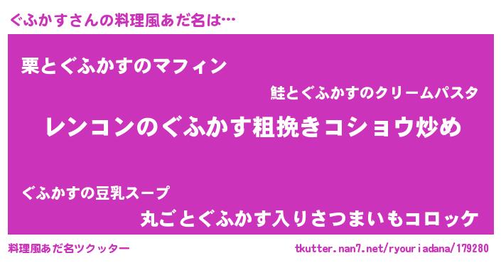 | 意味不明あだ名 | 『自称ぐふかす』『永久保存ぐふかす』 |