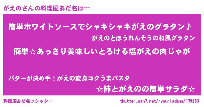 | ヘコむあだ名 | 『がえの(笑)』『がえっぺ』『つくし』 |
