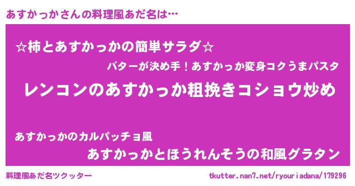 | ヘコむあだ名 | 『あすっちょ』『つくし』『あすもー』 |