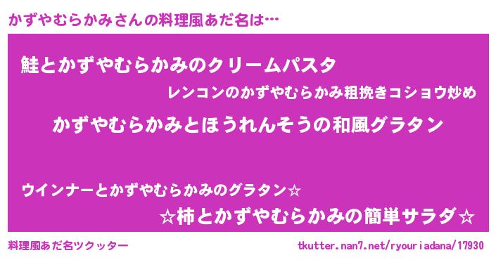| 女子向けラノベタイトル風あだ名 | 『かずやむらかみの玉の輿計画!』 |