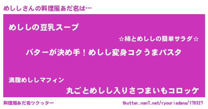 | 女子向けラノベタイトル風あだ名 | 『めしし恋絵巻』『めししは平凡を望む』 |