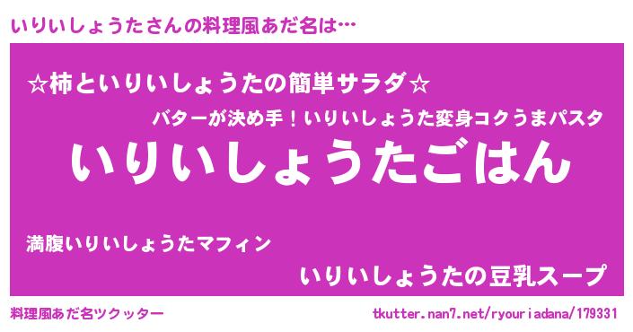 | 男性向けラノベタイトル風あだ名 | 『イリイショウタスレイヤー』 |