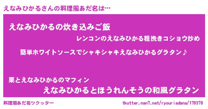 | 胡散臭い通販商品みたいなあだ名 | 『全米が絶賛したサプリメント…その名も「えなみひかる」』 |