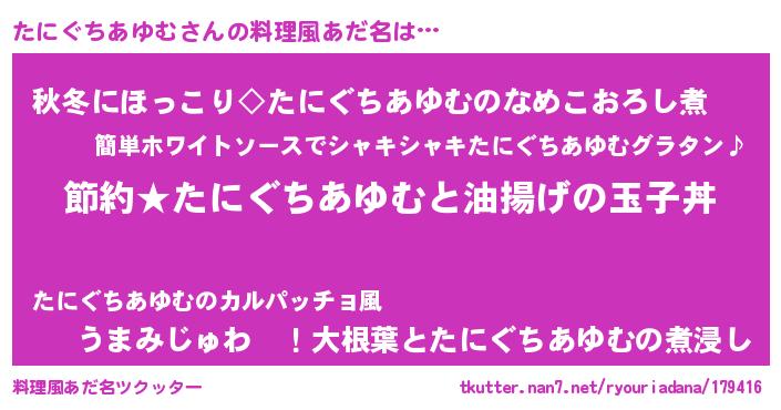 | 恥ずかしいあだ名 | 『プリティーたにぐちあゆむ』『たにちん』 |