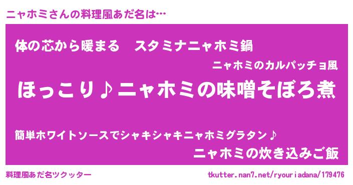 | 意味不明あだ名 | 『ペロリンニャホミ』『永久保存ニャホミ』 |
