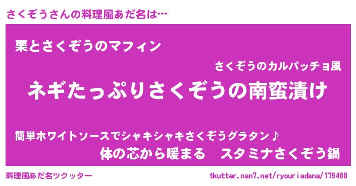 | 意味不明あだ名 | 『ペロリンさくぞう』『永久保存さくぞう』 |