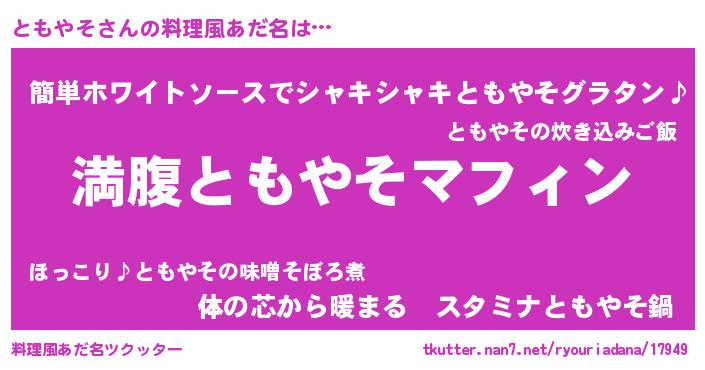 | ヘコむあだ名 | 『ともやそ(震え声)』『ともぷりん』 |