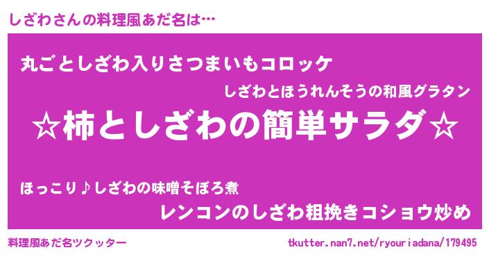 | ヘコむあだ名 | 『しざにゅー』『なまこ酢』 |