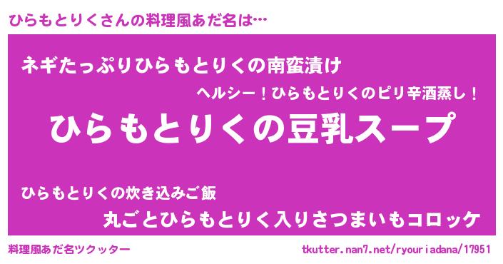| 男性向けラノベタイトル風あだ名 | 『ダンジョンにひらもとりくを求めるのは間違っているだろうか』 |