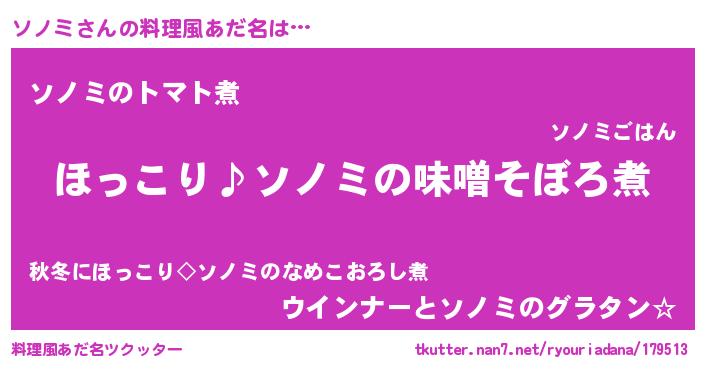 | 男性向けラノベタイトル風あだ名 | 『ソノミの憂鬱』『ソノミスレイヤー』 |