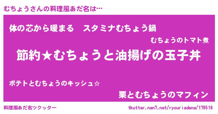| 意味不明あだ名 | 『ペロリンむちょう』『自称むちょう』 |