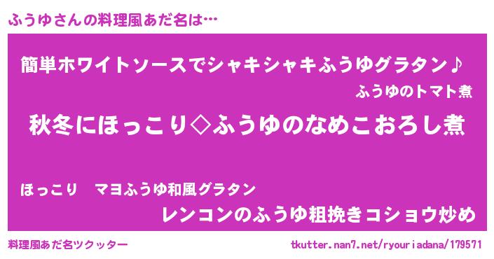| ポケモン風あだ名 | 『フウゴンZ』『ヒフウユ』『フーウイ』 |