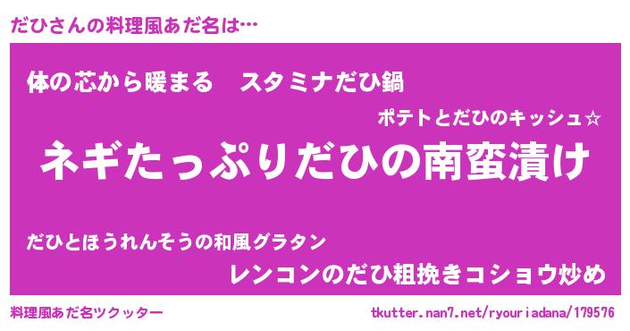 | ヒーロー風カッコイイあだ名 | 『スーパーダヒ』『ウルトラだひマン』 |