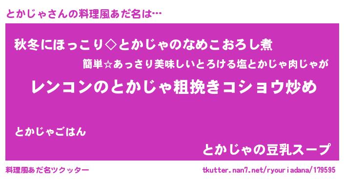 | 胡散臭い通販商品みたいなあだ名 | 『ガンによく効く冬虫夏草…その名も「とかじゃ」』 |