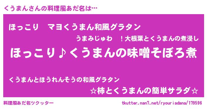 | 意味不明あだ名 | 『ペロリンくうまん』『自称くうまん』 |