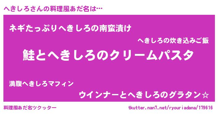 | ヒーロー風カッコイイあだ名 | 『慈愛の使者へきしろ』『ネオヘキシロ』 |