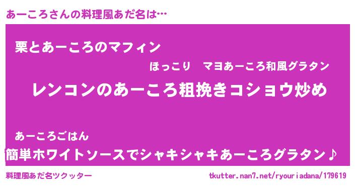 | 意味不明あだ名 | 『自称あーころ』『たけのこ科あーころ属』 |