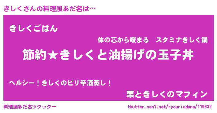 | 女子向けラノベタイトル風あだ名 | 『きしく姫と円卓の騎士』『闇のきしく』 |