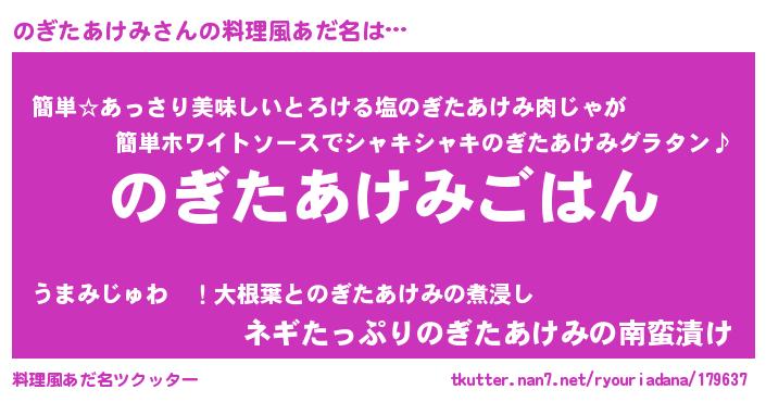 | ヘコむあだ名 | 『のぎたあけみ(苦笑)』『のぎにー』 |