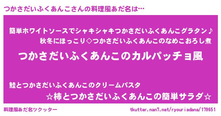 | ポケモン風あだ名 | 『ツーカイ』『ヒツカサダイフクアンコ』 |