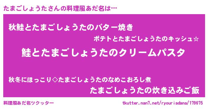 | ヘコむあだ名 | 『たまごしょうた(笑)』『たまぷりん』 |