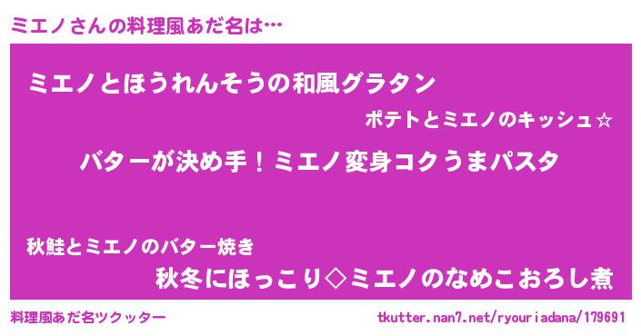 | ヘコむあだ名 | 『ミエぷりん』『ミエノ(苦笑)』 |