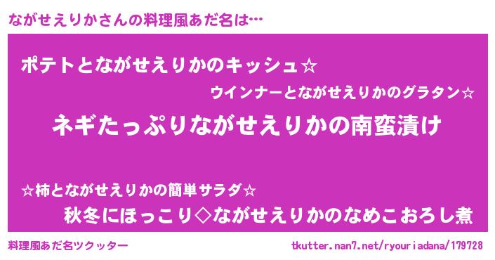 | 意味不明あだ名 | 『ペロリンながせえりか』 |