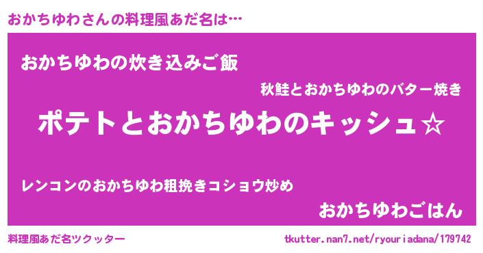 | ヘコむあだ名 | 『おかっ子』『おかちゆわ(苦笑)』 |