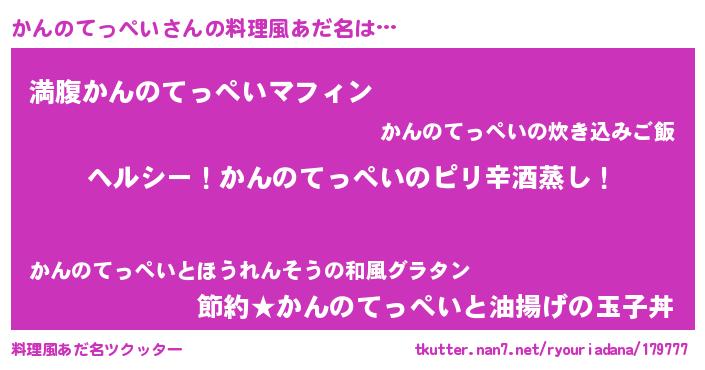 | 男性向けラノベタイトル風あだ名 | 『Re:かんのてっぺいから始める異世界生活』 |