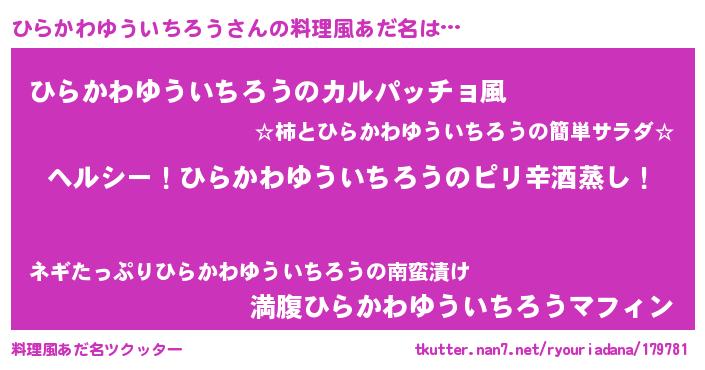 | 意味不明あだ名 | 『自称ひらかわゆういちろう』 |
