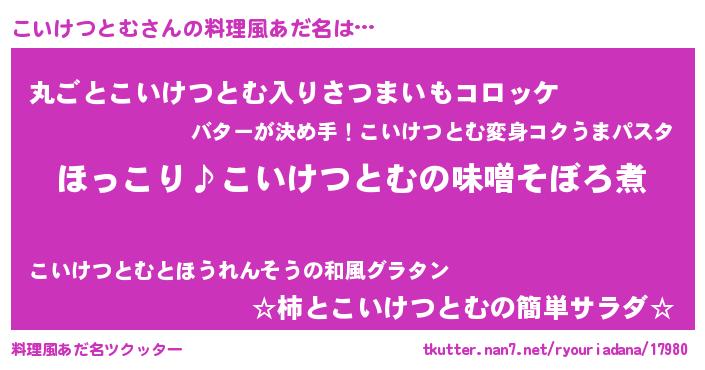 | 男性向けラノベタイトル風あだ名 | 『こいけつとむの憂鬱』 |