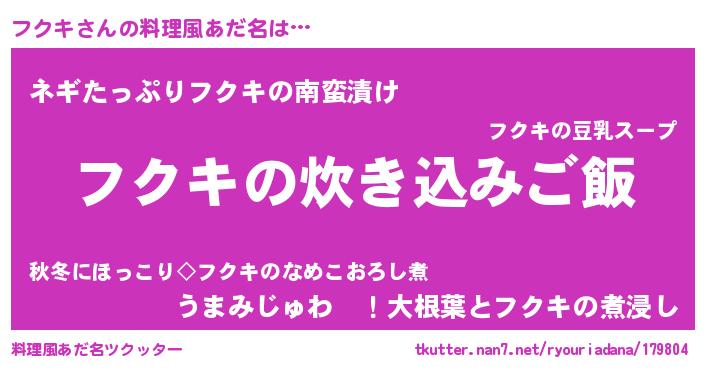 | ピコ太郎風あだ名 | 『フコ次郎』『ピフ史郎』『フク二郎』 |