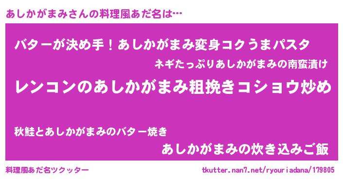 | 胡散臭い通販商品みたいなあだ名 | 『テレビで話題の高麗人参…その名も「あしかがまみ」』 |