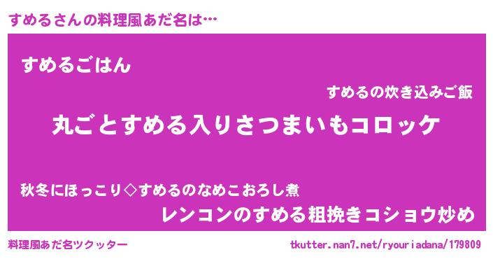 | 意味不明あだ名 | 『住所不定無職すめる(74歳)』『自称すめる』 |