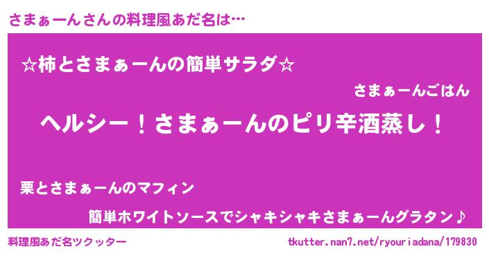 | ヘコむあだ名 | 『さまぷりん』『さまふぇ~』『豆乳』 |