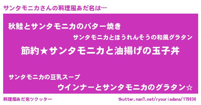 | 男性向けラノベタイトル風あだ名 | 『サンタモニカアートオンライン』 |