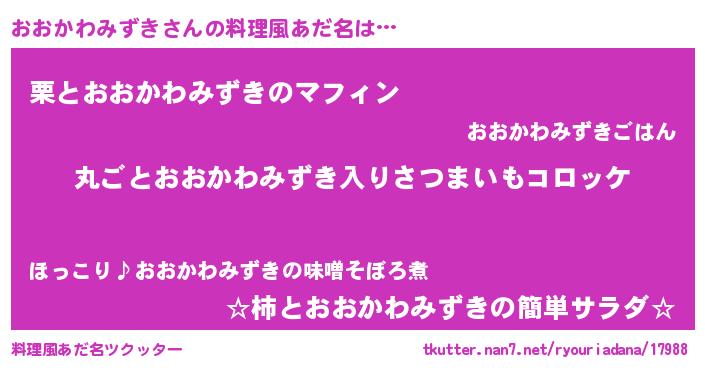 | 男性向けラノベタイトル風あだ名 | 『この素晴らしい世界におおかわみずきを!』 |