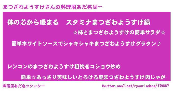 | ポケモン風あだ名 | 『ヒマツザワヨウスケ』『マツザダネ』 |