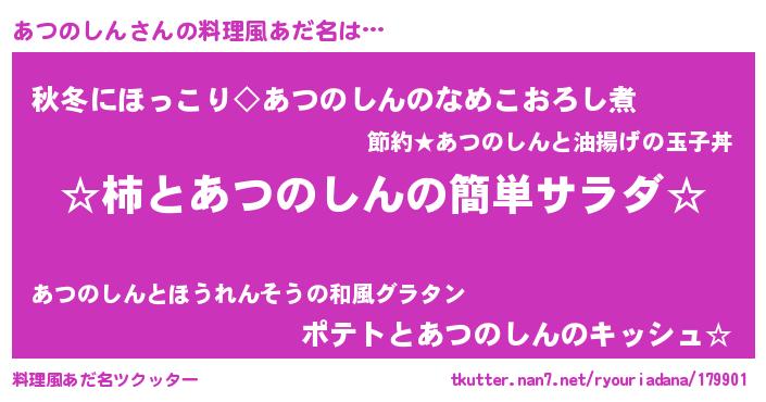 | 恥ずかしいあだ名 | 『アツリンリン』『プリティーあつのしん』 |