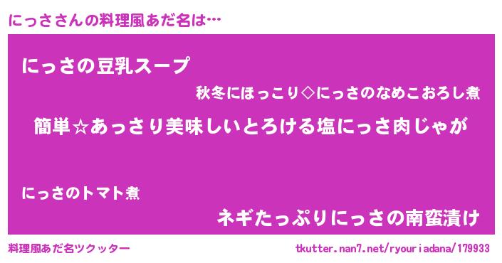 | ポケモン風あだ名 | 『ゼニニッ』『ヒニッサ』『ニッゴンZ』 |