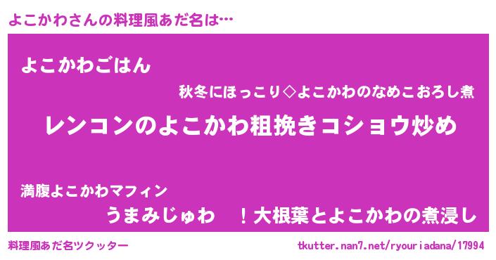 | 女子向けラノベタイトル風あだ名 | 『よこかわなんてお断りですっ。』 |