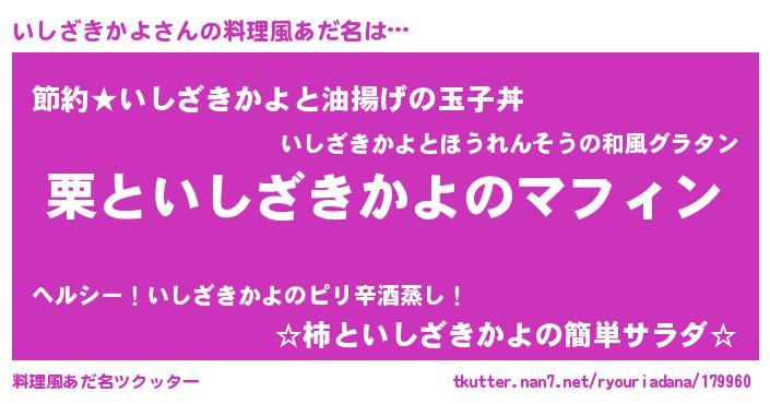 | ヒーロー風カッコイイあだ名 | 『スーパーイシザキカヨ』『仮面イシダー』 |