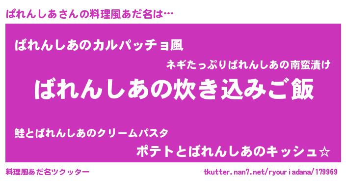 | 胡散臭い通販商品みたいなあだ名 | 『あなたにだけ特別に提供する世界で10本だけ現存している希少なブランデー…その名も「ばれんしあ」』 |