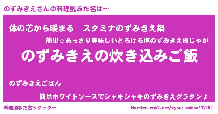 | 意味不明あだ名 | 『のずみきえフォーエバー』 |