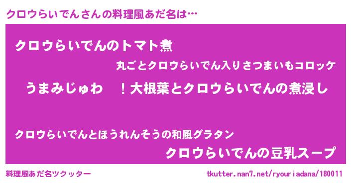 | 欧米人風あだ名 | 『クロウらいでんクリステル』 |