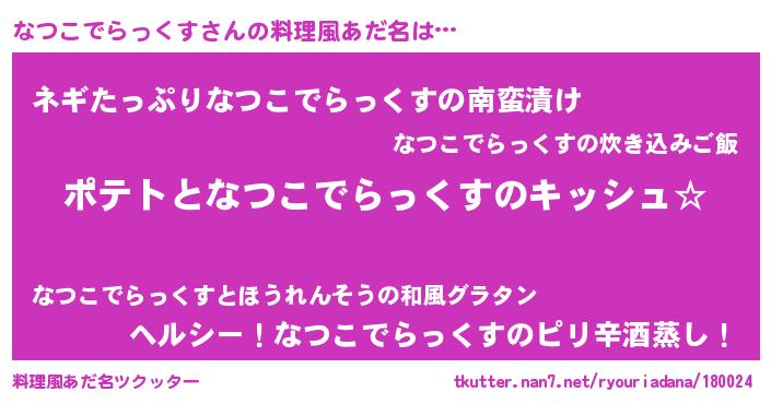 | 胡散臭い通販商品みたいなあだ名 | 『伝統あるサプリメント…その名も「なつこでらっくす」』 |