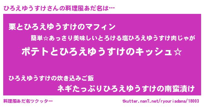 | ポケモン風あだ名 | 『ヒヒロエユウスケ』『ヒロゴンZ』 |